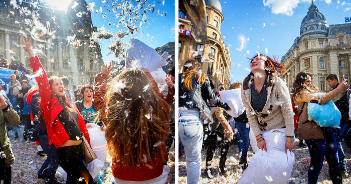 Besides weddings, I love to do street photography, and I try to attend many public events and unusual international days that take place in my city, Bucharest. Pillow Fight Day is one of the events I loved to snapshot because there was a lot of action, a lot of fun and many beautiful people. I am inspired by taking cool photos of non-conformist, enthusiastic, and happy people. Bucharest’s bustle and my clients’ joy keep my work alive.