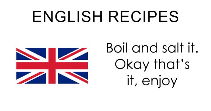 When we cook, a kitchen disaster is always one step away from us. A tablespoon of salt too much, a drop of vinegar too little and dinner is screwed. Bored Panda has compiled hilarious recipe secrets to help you master some of the most popular national cuisines so you wouldn’t have to order another boring takeaway meal for your hungry family.
