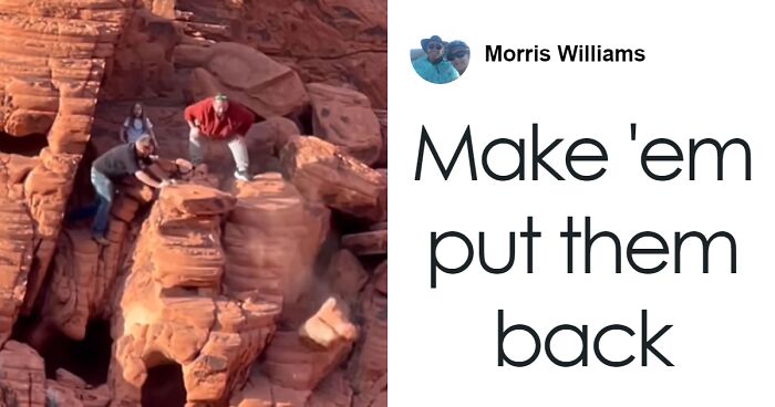 Load More Replies...What on earth possessed them to climb up there, with a child, to then wilfully destroy an ancient rock formation? I would also send them on mandatory geology lessons for at least a week with an exam at the end. At their own cost.