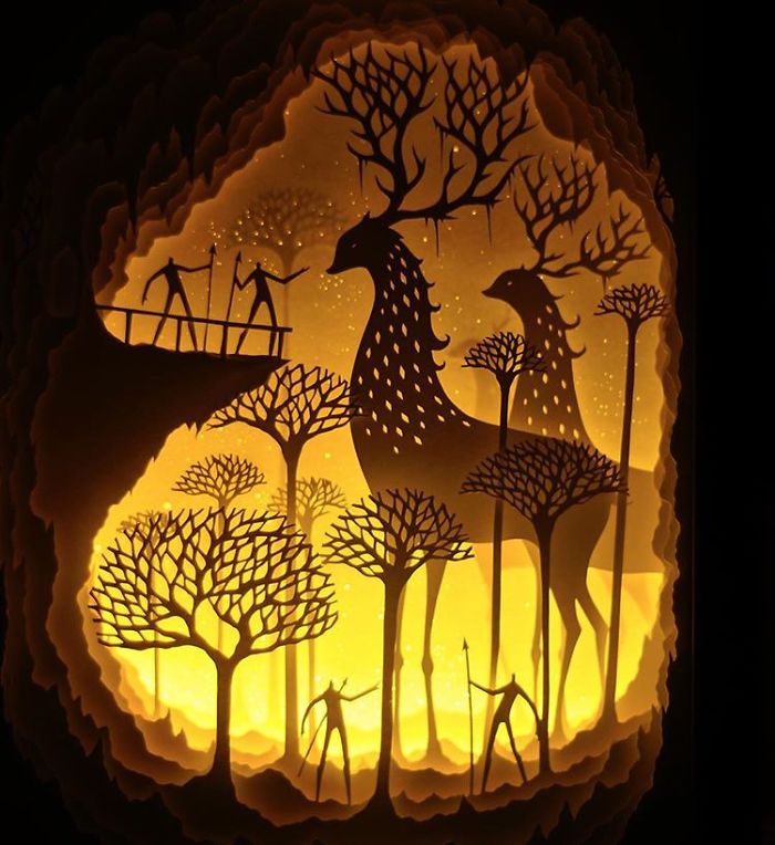 Married couple, Hari Panicker and Deepti Nair, applies their extraordinary artistry to paper to create magical, multi-layered scenes that will take your breath away. Working together on paper art for six years, Panicker and Nair merge their skills in graphic design and painting, respectively, to visualize their inspirations in layers, forming intricate artworks resembling the mysterious allure of Balinese shadow puppets.