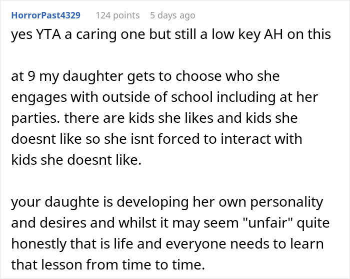 And what do you think about this situation? Was the parent right to include all the kids from the class, or did the birthday girl have every right to decide by herself who she wants to invite? Share your opinion below!