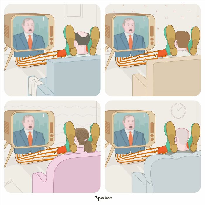 Load More Replies...Did not get the gist of most of these. Was too distracted by the fact that ALL the women look like pinup models in miniskirts, except when an ugly woman was necessary for comic effect.
