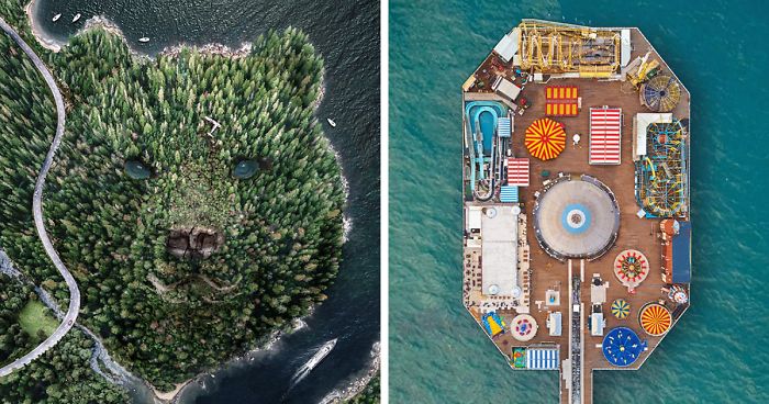 On his spare time, however, he is an avid enthusiast of pareidolia - a phenomenon in which someone sees a pattern or image of something that does not exist, for example, a face in a cloud. Pushing the concept a little bit further, Fabien uses stock images, as well as, his own photographs taken with a drone to create photomontages that show animals, objects and shapes that otherwise don't occur naturally.