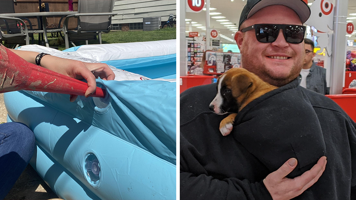 This Gentleman At Target Who Reversed His Hooded Sweatshirt To Make A Puppy Pocket