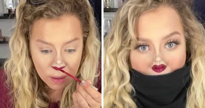 But no worries, well-known YouTuber and makeup artist Jaime French has you covered with a perfect quarantine makeup tutorial if you’re one of the latter. She took up a challenge of painting a tiny face on her nose after seeing it here and there over the year and getting recently reminded of it after seeing a girl doing it on TikTok.