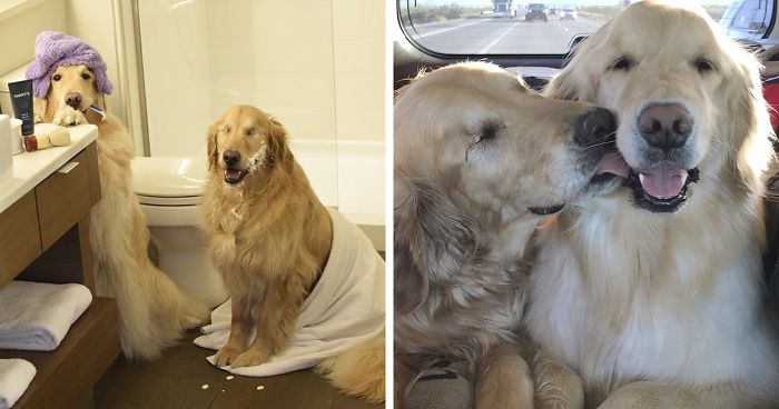 “We got Jake after our previous Golden Molly passed away and Addie came into our lives after our Golden Wrigley died. Jake was very sad after his buddy was gone and we knew he needed a sibling,” their owner Kim told Bored Panda.