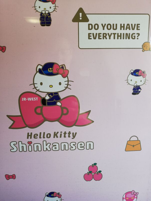 I got on a Hello Kitty themed train in Japan. Every little thing, even the pictures of the driver on the tiny train maps on the back of the seats had been changed to kitty. IMG_201911...14b396.jpg