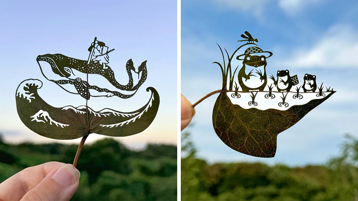 We spoke with the artist behind these unique leafy artworks to learn more about the inspiration behind his creations. He shared that the idea for starting his own project came after seeing an article about leaf cutout art by a Spanish artist: “It inspired me to try it myself.”