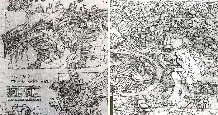 Japanese Designer Finds Wife’s Old Notebook Doodles, Shares Her Detailed Drawings On Twitter