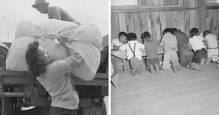 A photographer Dorothea Lange who is probably best known for her photo titled Migrant Mother was hired by the US government to document the evacuation. The photographer perfectly captured the devastating moments of Japanese-Americans leaving their old lives behind and entering into the unknown. However, the military wasn't happy with Lange's opposing opinion of the internment camps. The photographs were seized from her and only made public in 2006. Today we finally have the opportunity to look back at this particular moment in history and see for our selves how the lives of Japanese-Americans were changed forever.
