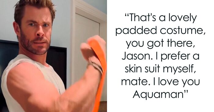 “That’s a lovely padded costume you got there, Jason. I prefer a skin suit myself, mate,” the Thor star quipped as he breathed heavily through his reps. Nevertheless, he concluded the video showing it was all in good fun: “I love you, Aquaman.”