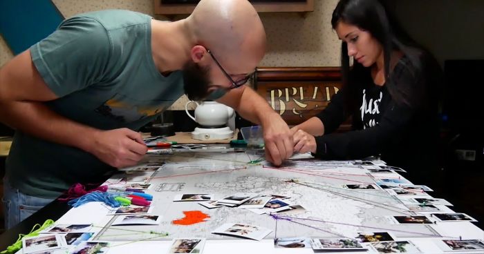We love traveling and want to keep on doing in it, so we decided to create this map. We colored the Countries, and States (only in the USA) we’ve been and joined it with a thread to at least one photo (most taken with our Instant polaroid) taken on that place.