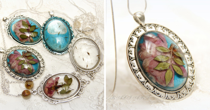 I present to you my latest models jewelry with flowers. Part of the fun is to photograph them and prepare for the presentation.