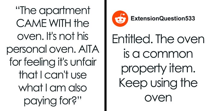 People online side with the man, saying that the oven is common property and he should be able to use it