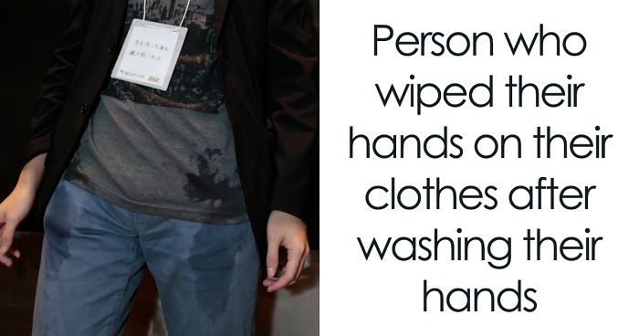 Person Who Wiped Their Hands On Their Clothes After Washing Their Hands