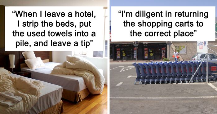 Every time I leave a hotel, I strip the beds, fold the toilet paper into a triangle, put the used towels into a pile, and leave a tip for the maid because I used to be a maid and I know how much it sucks.