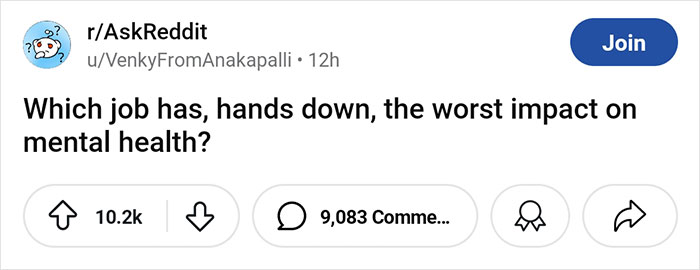 Recently, one person on the Internet asked: “Which job has, hands down, the worst impact on mental health?” And while some of the answers from people reflect statistics from the article, others might be quite surprising.