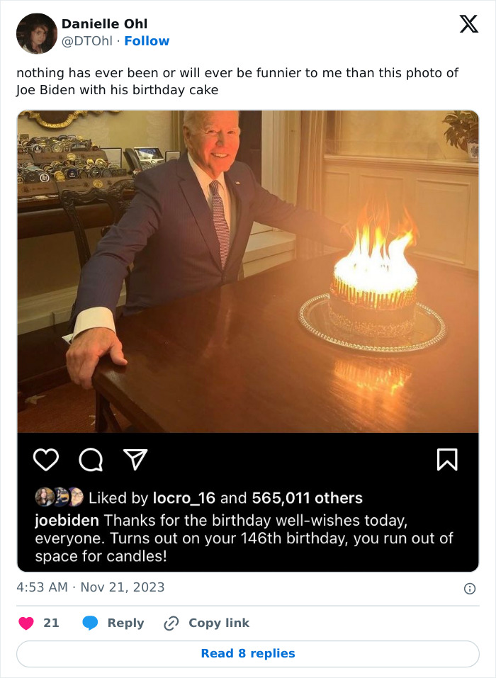 Biden himself even joked about it in the caption, writing, “Turns out on your 146th birthday, you run out of space for candles!”