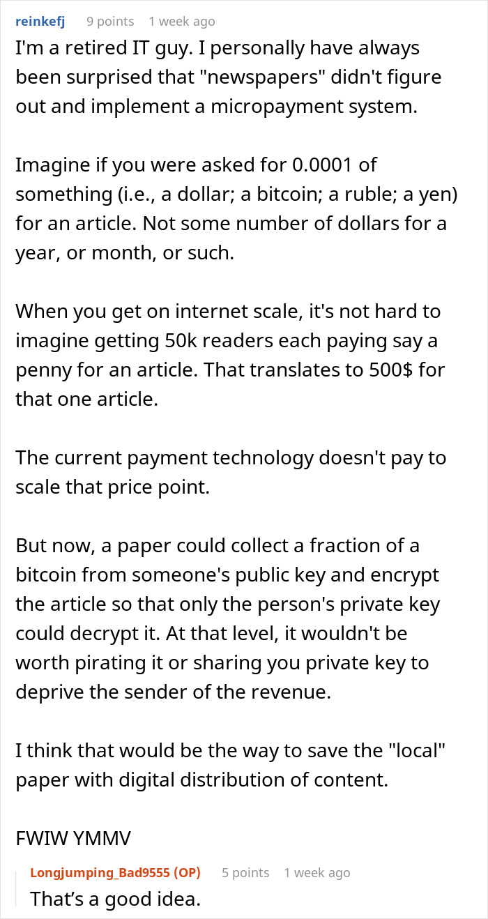 However, as the name of the subreddit in which Longjumping_Bad9555 shared their story suggests, that was only the beginning of it. The setup. Eventually, the journalist found a way to get the boss to change his mind and switch them to a salary.