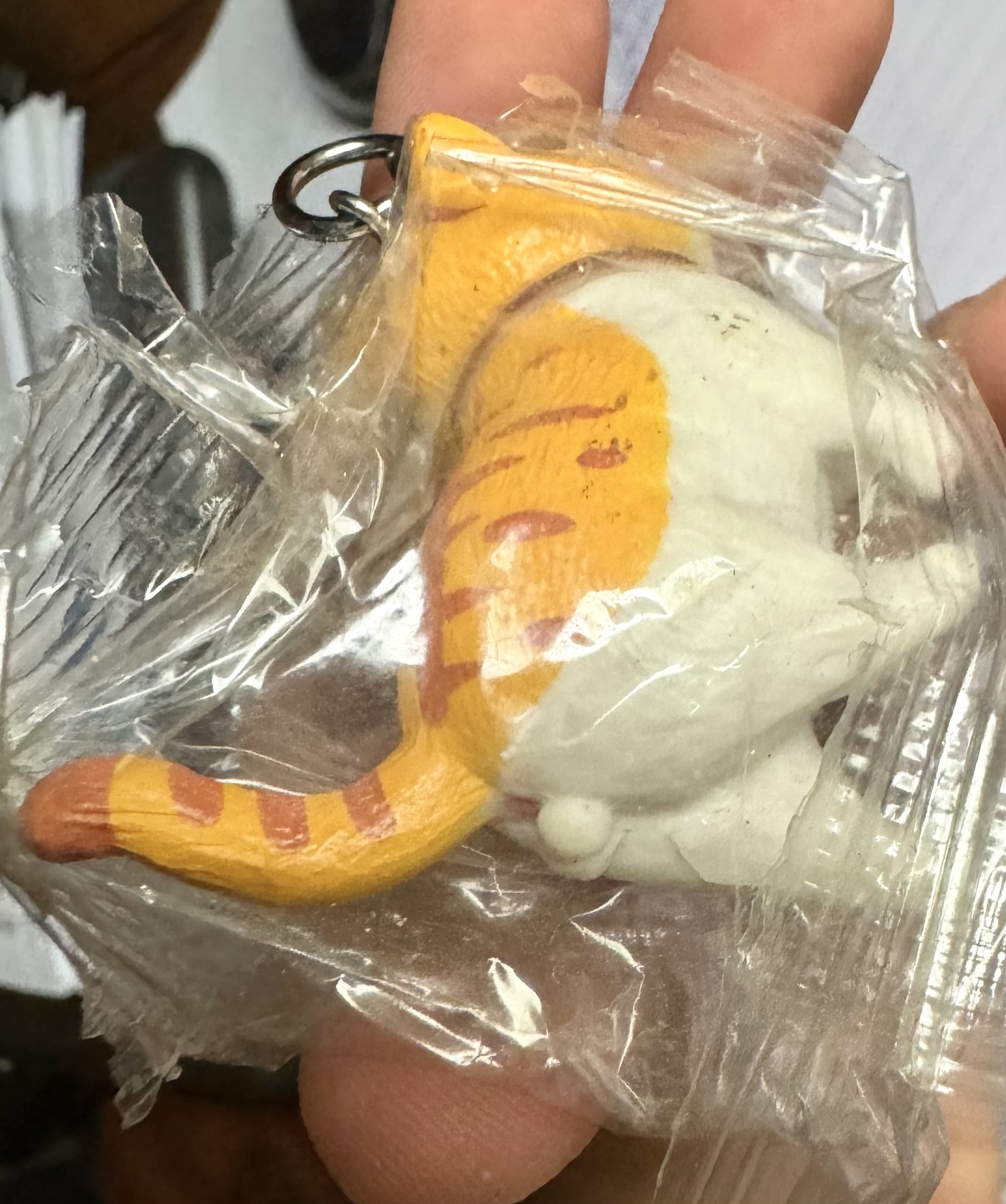 I once bought a cat key chain which had these exact precise details. The cat is just about 6 cm (~ 2.5 inches) long but they HAD to include the *important* details. Immediately bought one for a friend afterwards but never gifted it so now I have two ballsy cat keychains.