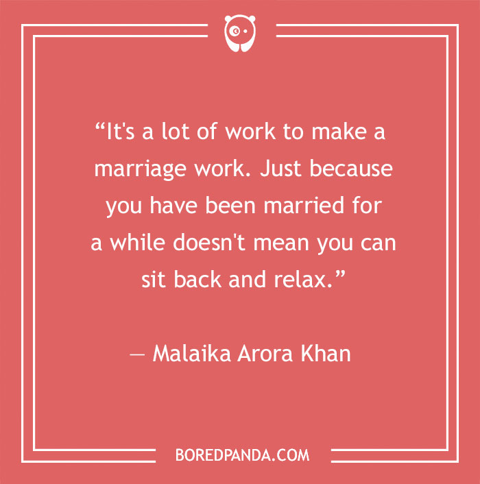 "It's a lot of work to make a marriage work. Just because you have been married for a while doesn't mean you can sit back and relax." - Malaika Arora Khan
