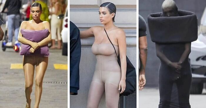 In July, social media users compared the outfit she wore to attend a church service in Los Angeles to a condom. The 28-year-old sported a black dress that covered her in sheer fabric from head to toe along with a padded ring around her neck.
