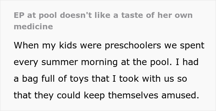 Case in point, a redditor shared a bit of drama that recently happened at the pool. They told the r/entitledparents subreddit how some mom yelled at their kids to share their toys with her own child… something that they’d previously been doing anyway.