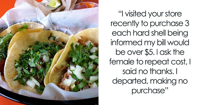The letter began with a very specific introduction, revealing that the customer was a regular since 1980s when they first obtained their driver’s license; moreover, they’ve also done a little math, and shared that if they were to add up the money spent on all those hard-shell tacos, the total would be in the thousands of dollars. Last time they visited the restaurant to purchase 3 tacos, they were taken aback as the bill came out to a whopping $5. The news deeply saddened the former client and they departed, making no purchases.