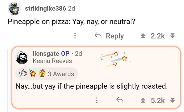 The sea of ask-me-anything questions started rolling in, and Keanu was ready to tackle them all.