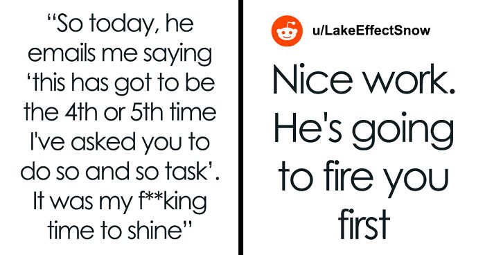 Load More Replies...I started to write an email every time I spoke with my bosses and came to an agreement summarising what was agreed upon and asking for confirmation that I got it right and that's what they wanted from me. I also only transmitted any work or information in mail. Whenever they claimed they told me something else or I didn't do as they said I'd pull the mail and be done. Meanwhile I poured most of my energy into job search. They had absolutely nothing on me and couldn't push their own mistakes and failures onto me. Everything had a 'paper'trail. I'm so glad I'm out of there. I still do the mail thing. But my current boss likes it. She sorts it into folders and uses it for her own documentation. She has to document those agreements anyways for her vacation substitute and likes it that she can just copy and paste from my mails.