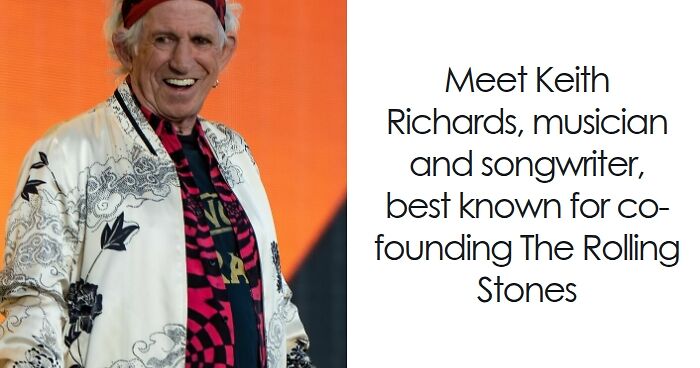 Keith Richards is a British musician, songwriter, and a founding member of The Rolling Stones. His distinctive guitar style shaped the band’s enduring sound.