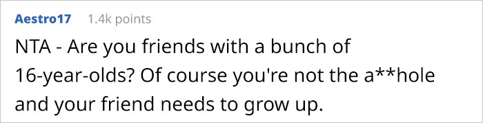 This online user took his concern to one of the most popular online communities to discuss his somewhat absurd situation. “AITA for kicking my friend out of my bedroom so my wife could take a nap?” A fight provoked by a simple request bothered the author enough to seek help from fellow Reddit users, as he wanted to find out whether he’s indeed the villain of the story. The post received over 20K upvotes and 2.5K worth of comments discussing his friend’s toxic approach.