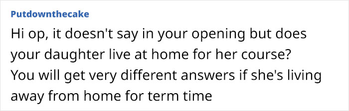 She gives some details about it – apparently her daughter is a university student with a part-time job to boot, getting student loan payouts too. It also seems as if her wage is quite unstable, the poster mentioning that it changes “so much”, whatever that means exactly.