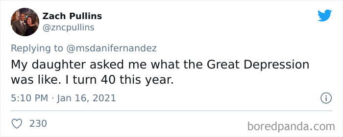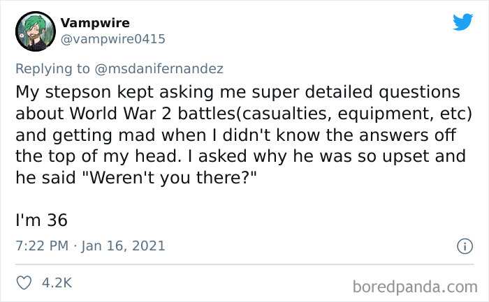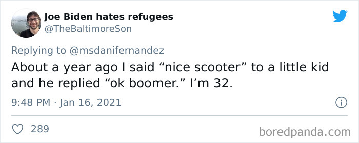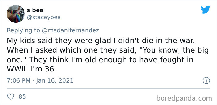 Load More Replies...I get a little kid not grasping age...But when someone in their teens or 20's doesn't get it (eg: a 45 year old isn't a baby boomer) it just makes them look stupid.