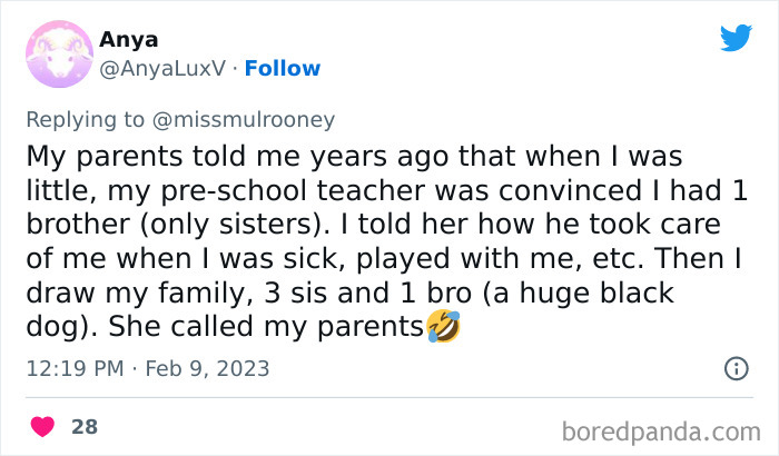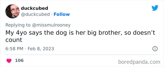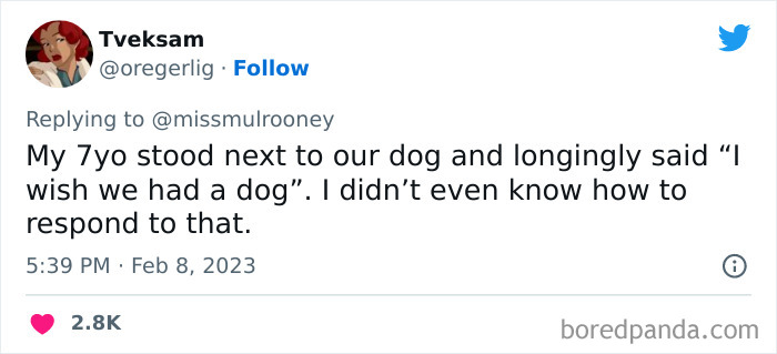 Kristen Mulrooney recently tweeted about her 3-year-old’s revelation that their dog is actually a pet, and many other parents were inspired to share similar conversations they’ve had with their own little ones. So below, you'll find some of the most hilarious times kids adorably mistook their pets for humans, as well as interviews with Kristen and bioethicist and writer Jessica Pierce, Ph.D. Enjoy scrolling through this list (where, let’s be honest, these children make some very valid points!), and be sure to upvote all of the pics that warm your little pet-loving heart. Image credits: missmulrooney