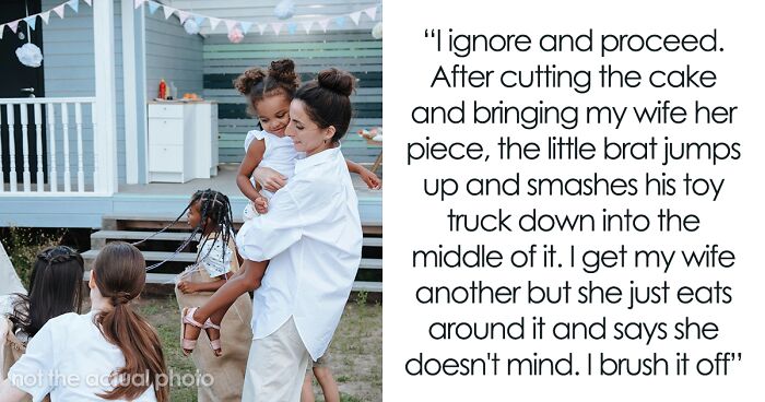 This time, the post’s author bought a cake for their wife, and one of these kids (who is 6 years old, by the way) threw a tantrum when the author didn’t let them carry a cake with lit candles. Then, later, when the cake was cut, the kid proceeded to smash his toy truck into one of the pieces that was meant for the birthday woman. The OP got their wife another piece, but she ate around the toy truck, saying she didn’t mind it.