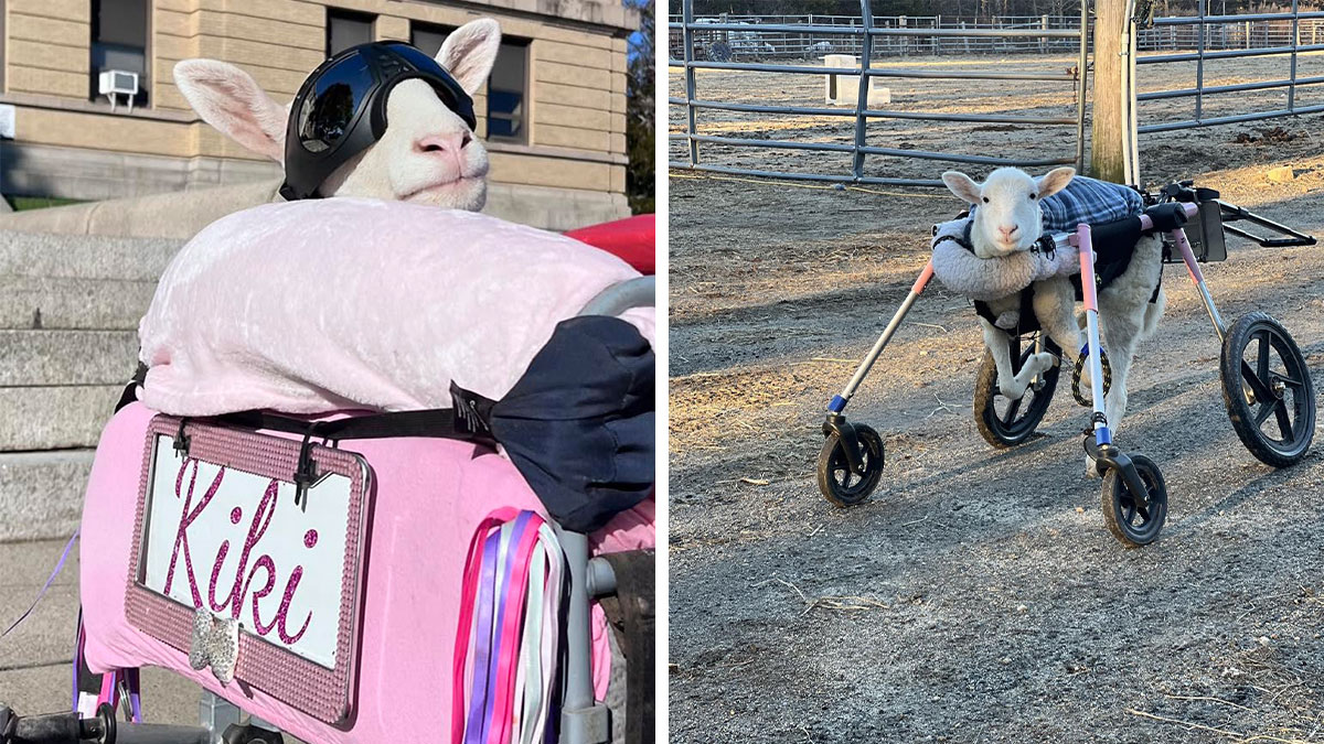 Some animals get dealt a rough hand right from the start — and Kiki the sheep is one of them. Kiki was born unable to walk after the Cache Valley virus affected her before she was even born. She arrived at Don’t Forget Us, Pet Us! in Dartmouth, Massachusetts, when she was just 11 days old, and caring for a non-walking lamb has meant constant, hands-on support from day one.