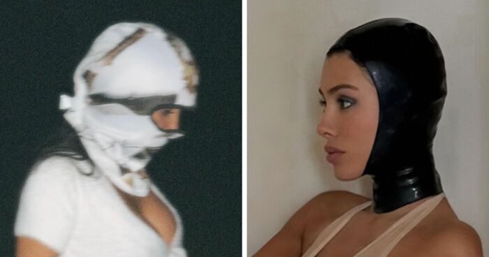 Kim Kardashian’s provocative new look—a white crop top, thong, balaclava, and boots—had fans accusing her of copying Bianca Censori