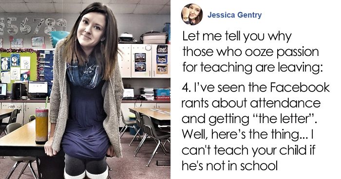 It takes guts to quit your job. But leaving behind your whole profession? Impossible without an overwhelming combination of soul-searching and disappointment. Recently, Jessica Gentry, 34, from Harrisonburg, Virginia, quit being a kindergarten teacher at Stone Spring Elementary School. Now, sick and tired of all the people assuming she did it for lousy pay, Jessica penned an emotional Facebook rant revealing the true reasons behind her difficult decision. And money wasn’t even on the list. Her sincere words have already received over 263K reactions and 800 comments, many of which are actively supporting Gentry and the new route she’s taking.