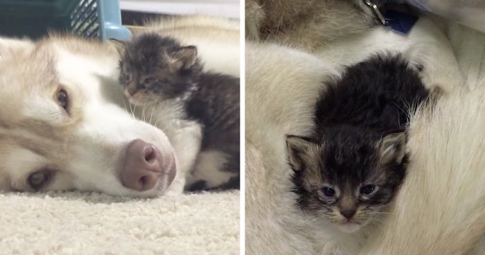 Rosie the kitten and Lilo the Husky are different by chance, but best friends by choice. They met when Rosie was only 3 weeks old. She was a sick little rescue kitten, but when her new owners paired her with Lilo, the dog changed its life forever. “She almost did not make it through the first night,” Rosie’s human recalled. “Even with round the clock care. She was lethargic and limp. So we decided to go out on a limb and let her cuddle extensively with Lilo. By some miracle, she started suckling on Lilo and Lilo went full ‘mom mode’. Even stimulating it to go to the bathroom… Since then, Rosie’s been getting much better and her eyes opened!” Lilo has never had puppies of her own, but heard motherhood calling just when one life needed it most. Since then, the two can’t keep apart and celebrate their unlikely friendship each day by enjoying everything together.