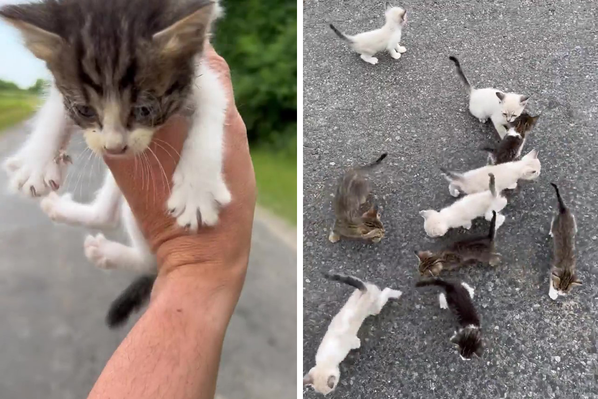 Man ‘Ambushed’ By Kittens As He Stops On The Side Of The Road To Rescue One