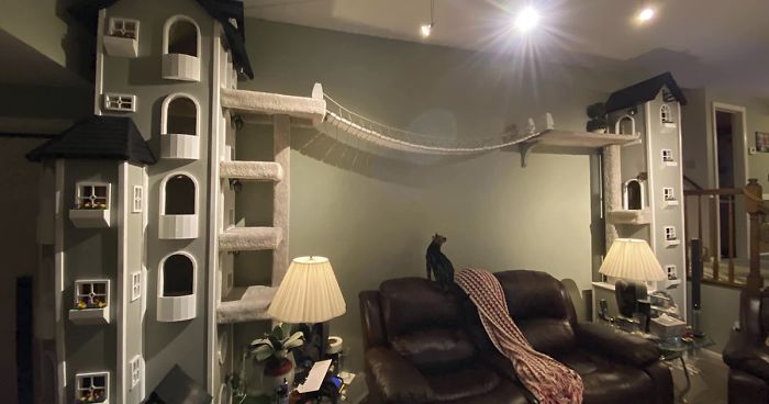 Recently, Rob Coutu from Windsor, Connecticut, decided to embrace these instincts of his cats and built them two epic towers. The well-crafted structures provide them with both comfort and entertainment, and his little furballs are absolutely loving them.
