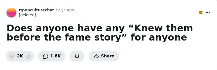 Someone wanted to hear the stories of folks who knew A-listers before they were famous and netizens delivered. So get comfortable as you scroll through, upvote your favorites and be sure to share your thoughts and experiences in the comments section down below.