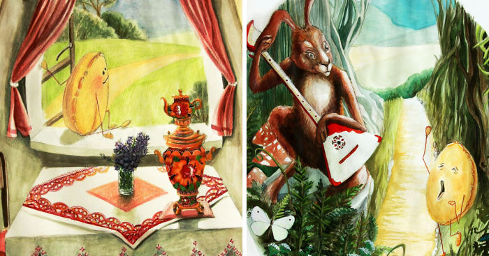 An old woman baked a bread with a peculiar wander lust in it. It left to see the world and got into a forest