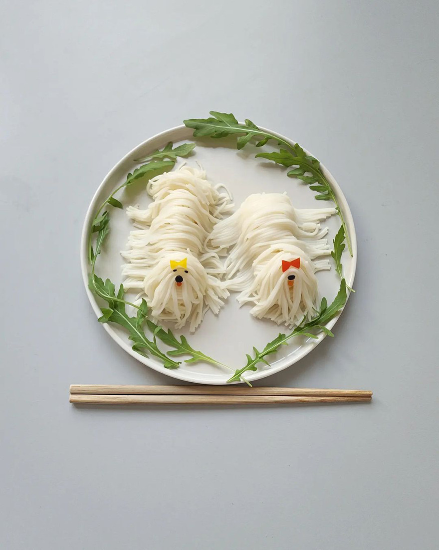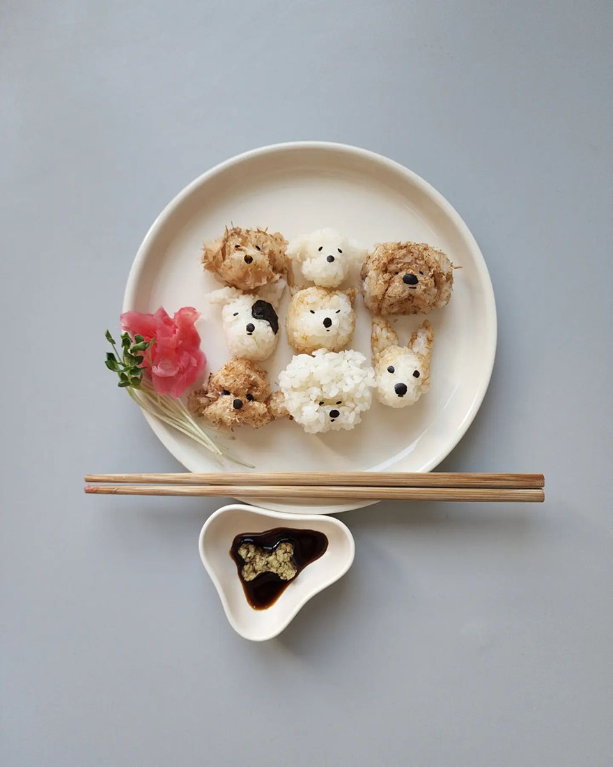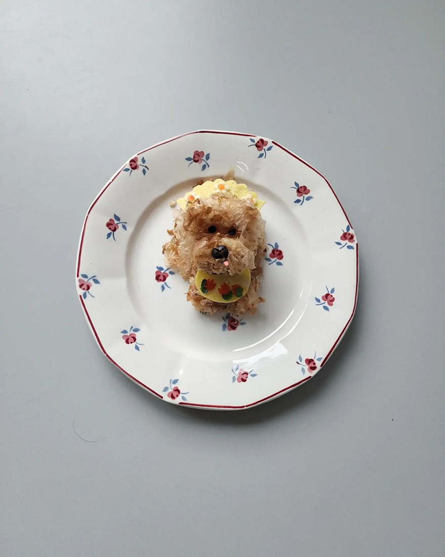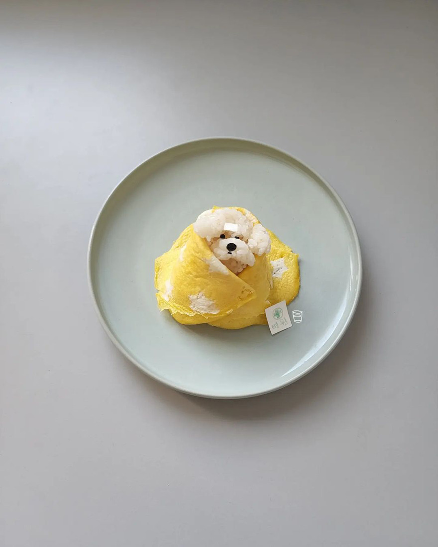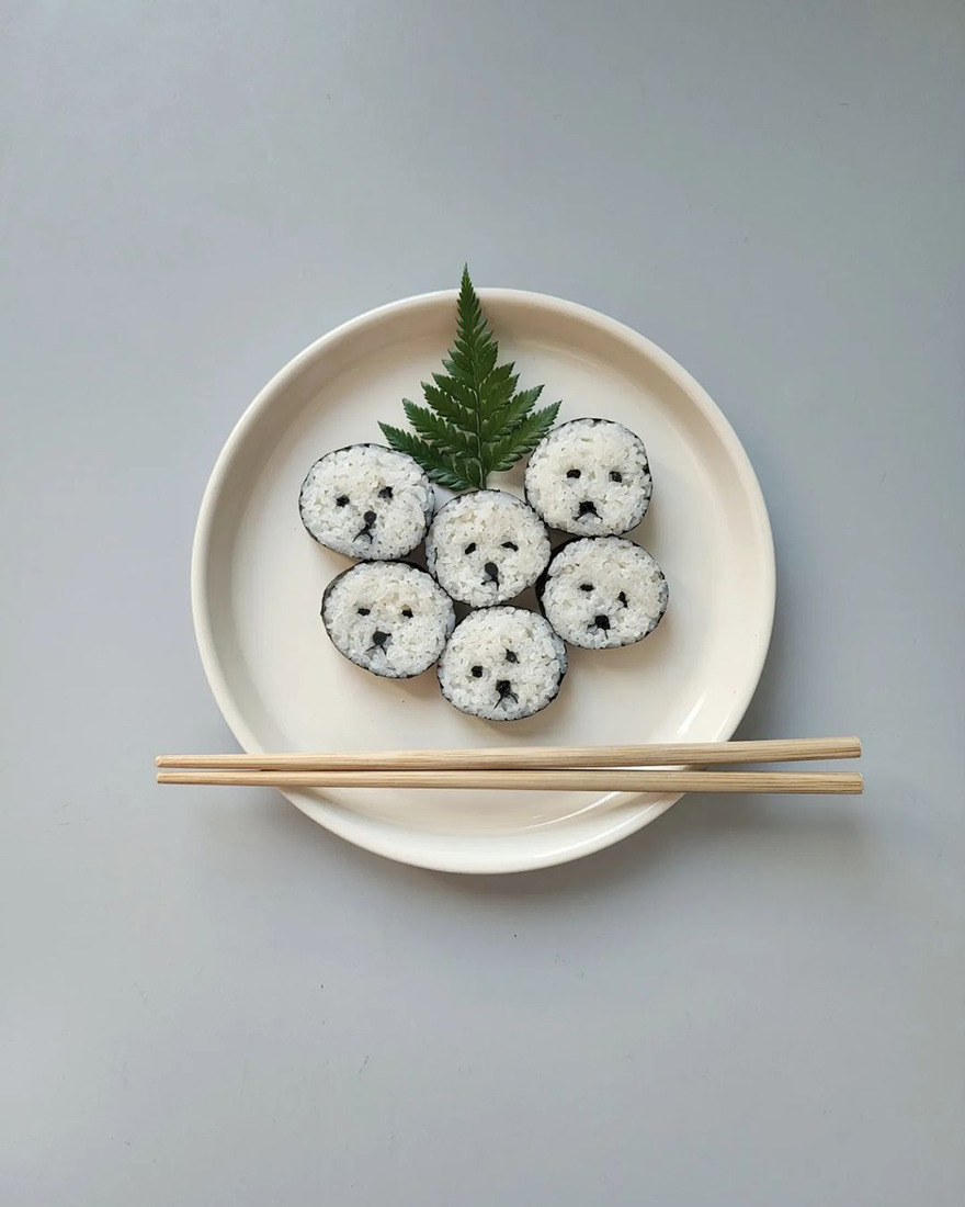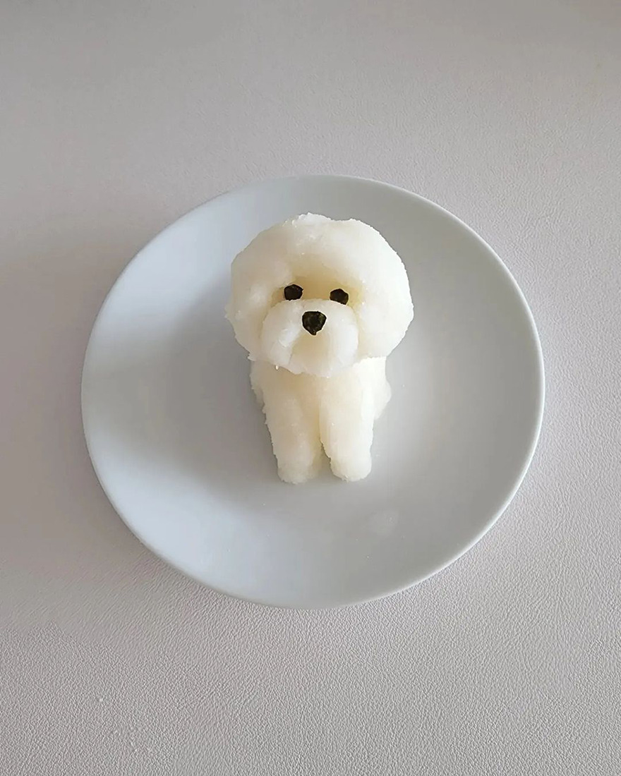 We invite you to meet Min Kyungjin, a 39-year-old artist from Korea who has become an expert in cute food art. On her Instagram account, Kyungjin shares her too-adorable-to-eat pieces that mimic dogs, cats, pandas, and other not animal-looking foods. Min told Bored Panda that some of her meals are even too cute for her: "I eat most of the dishes, but I can't eat the dishes that I like very much."