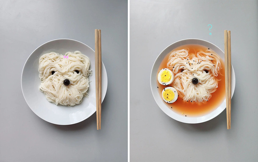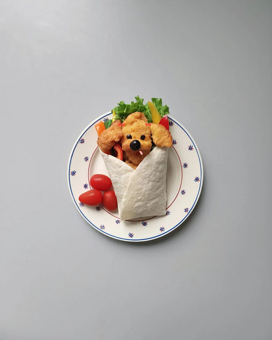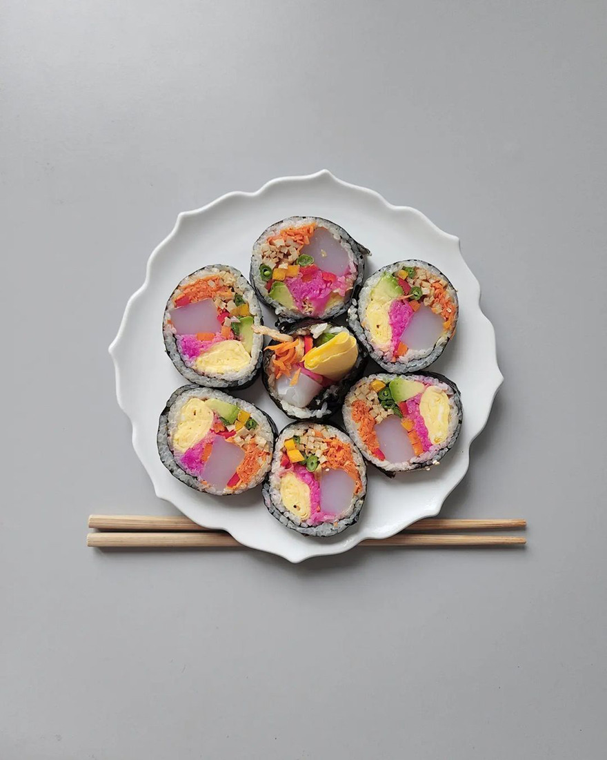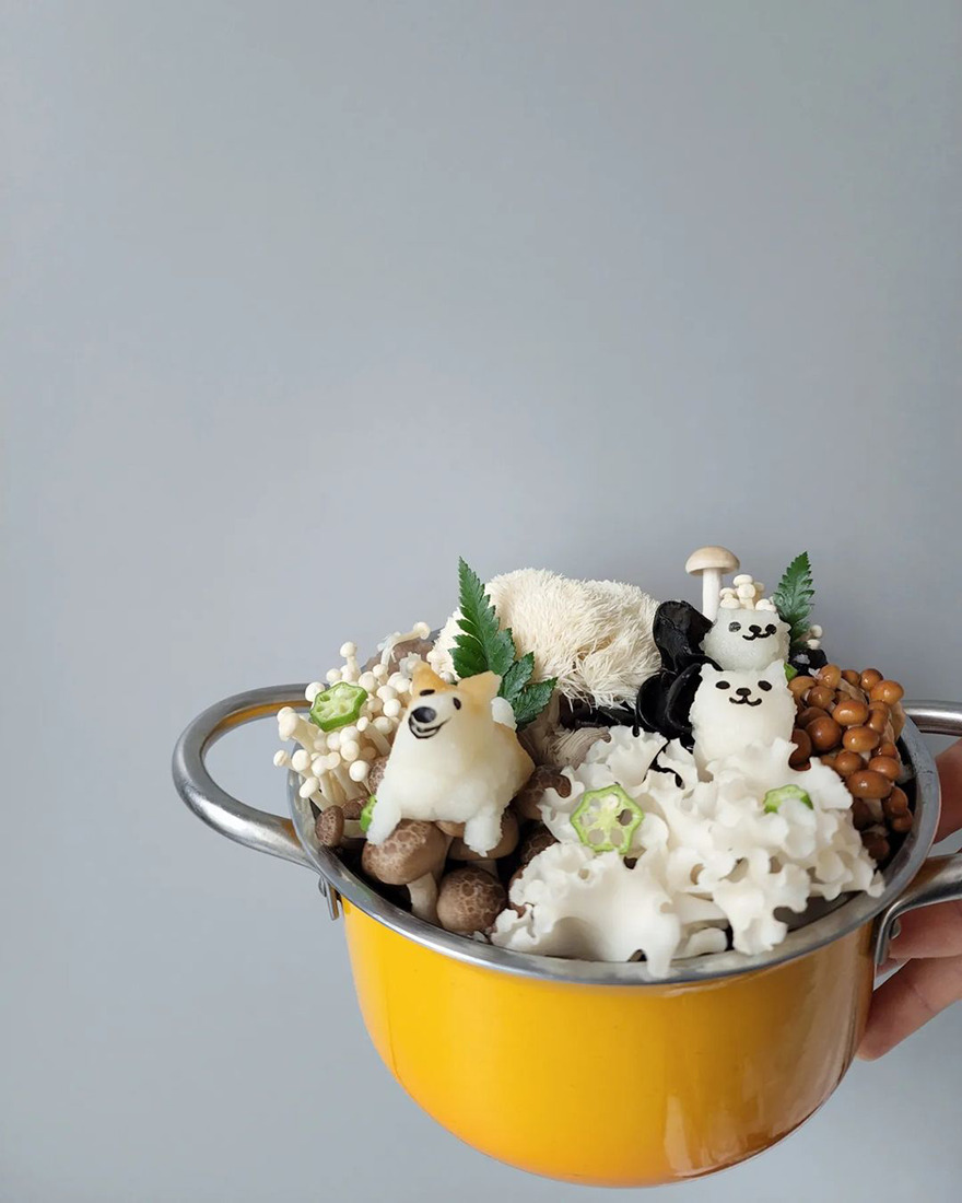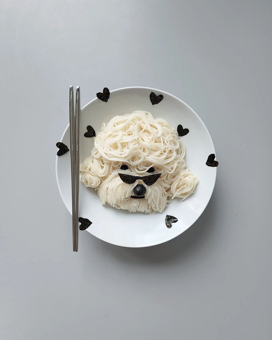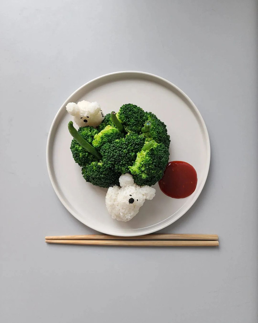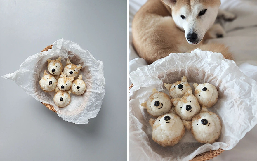 We invite you to meet Min Kyungjin, a 39-year-old artist from Korea who has become an expert in cute food art. On her Instagram account, Kyungjin shares her too-adorable-to-eat pieces that mimic dogs, cats, pandas, and other not animal-looking foods. Min told Bored Panda that some of her meals are even too cute for her: "I eat most of the dishes, but I can't eat the dishes that I like very much."