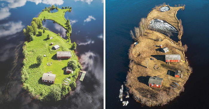 One of those magical objects that caught Ylinampa‘s eye was a lovely Kotisaari island in Rovaniemi, that used to be a traditional stronghold of the Lumberjacks in Kemijoki. Floating in the scenic Kemi river, it became just the right place to fulfil photographer’s wish to capture the changing beauty of nature. He documented the island from a drone through all four seasons, which resulted in four really different but mesmerizing pictures of this wonderful piece of land. Scroll down to see it for yourself.