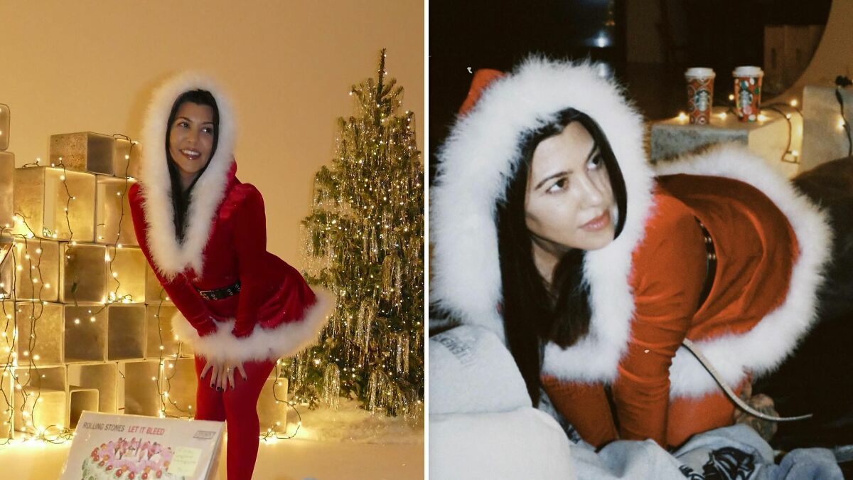 Other comments on Kourtney’s post referenced the background music she chose: hersister Kim’s recent cover of the 1953 Christmas classic Santa Baby.