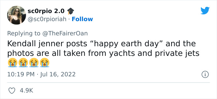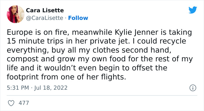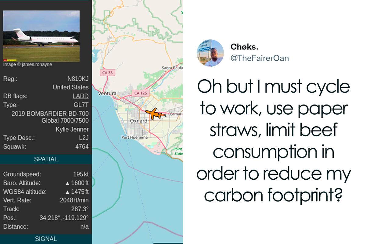 Hence, folks were complaining why the majority of the planet now suddenly has to choose paper straws and wooden cutlery and paper plates and eat less beef and cycle to work and recycle everything and reduce waste and you get the point, while Kylie takes a 3-minute flight and negates all of that with a snap of the finger.