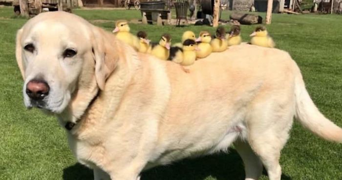 Fred is a 10-year-old labrador retriever at Mountfitchet Castle in Stansted, UK. As a loyal and friendly pup, he recently became renowned as he took on the role of Dad of nine orphaned ducklings.